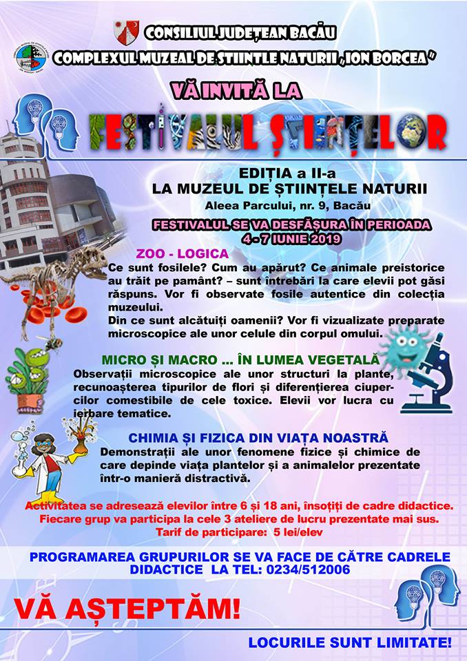 În anul 2019, vom organiza ediția a II-a, iar evenimentul se va desfășura în locaţii diferite, în mai multe perioade, astfel încât să poată participa un număr mai mare de elevi și de cadre didactice. Fiecare subunitate a Complexului Muzeal „Ion Borcea” din municipiul Bacău va fi implicată în organizarea evenimentelor din cadrul „Festivalului Științelor”, astfel: