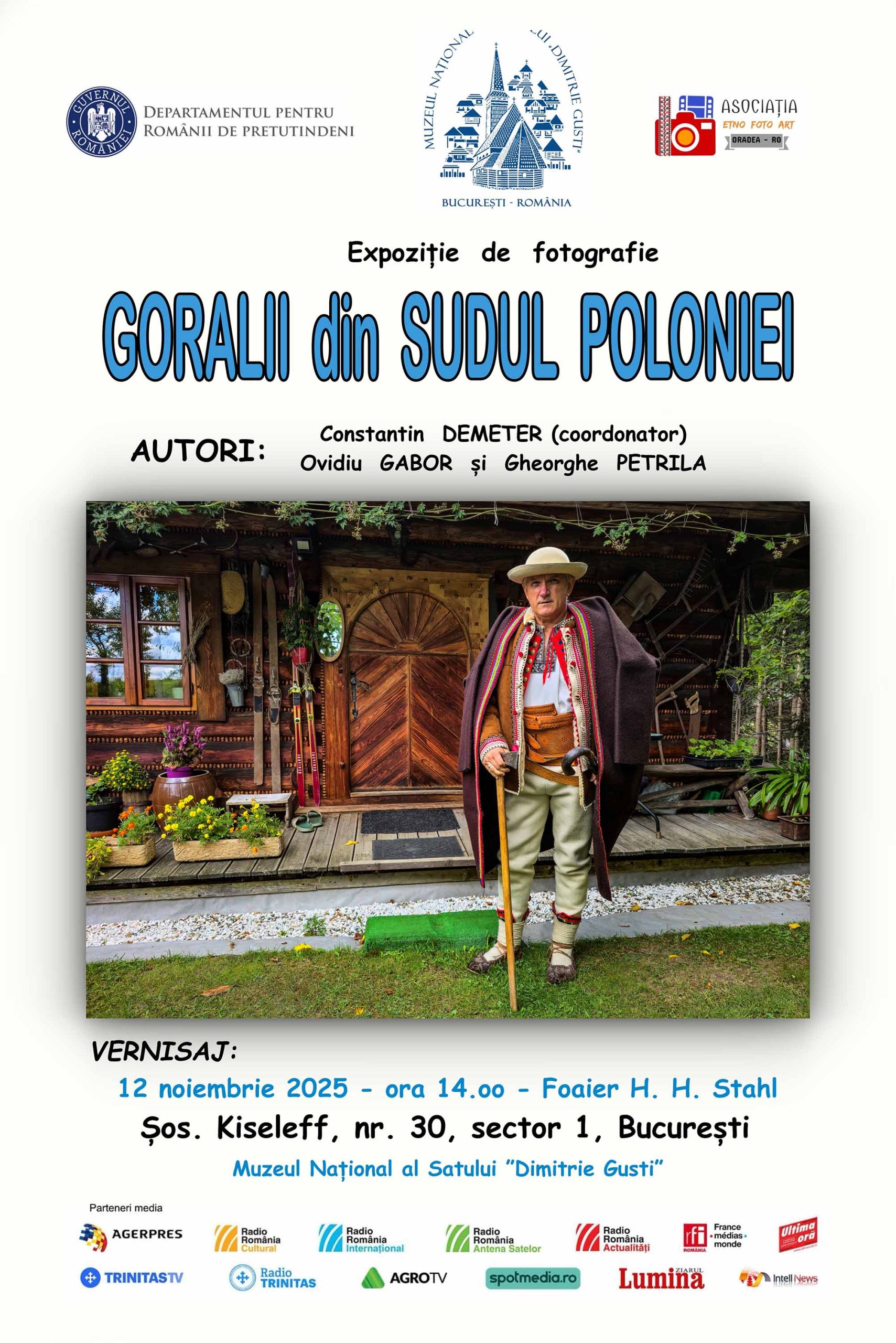 Muzeul Naţional al Satului „Dimitrie Gusti” vă invită miercuri, 12 noiembrie 2025, începând cu ora 14.00, la vernisajul expoziţiei de fotografii documentare „ Goralii din Sudul Poloniei” semnată de artiștii fotografi orădeni: Constantin Demeter (coordonator), Ovidiu Gabor şi Gheorghe Petrila.
