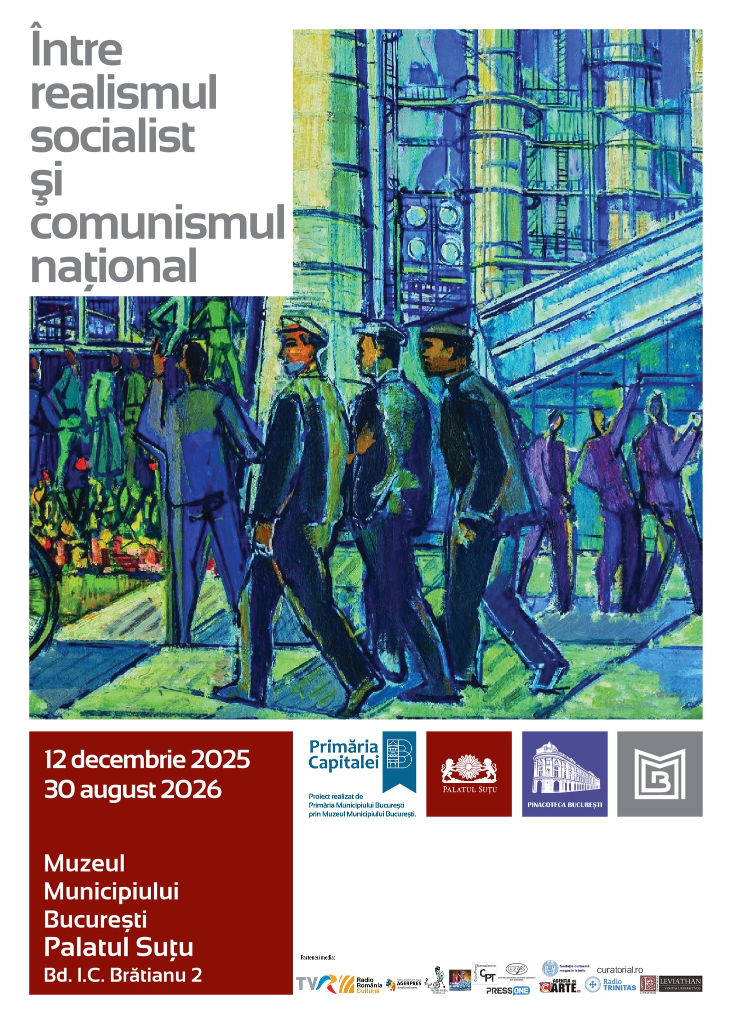 Muzeul Municipiului București invită publicul la vernisajul expoziției „Între realismul socialist și comunismul național”, eveniment care va avea loc vineri, 12 decembrie, ora 17:00, proiectul muzeal urmând a fi găzduit în spațiul Pinacotecii București de la Palatul Suțu (Bd. Ion. C. Brătianu, nr. 2). Expoziția este dedicată unuia dintre cele mai complexe și sensibile capitole ale artei românești din secolul XX: perioada comunistă și formele ei de expresie vizuală, de la realismul socialist la arta de propagandă.