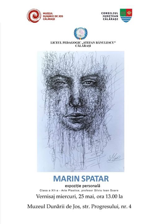 Mâine, 25 mai, ora 13,00, elevul Marin Spatar din clasa a XII-a, profilul Arte Plastice, clasa prof. Soare Ioan Silviu, de la Liceul Pedagogic Stefan Bânulescu, va deschide o expoziție personală la Muzeul Dunării de Jos din Călărași.