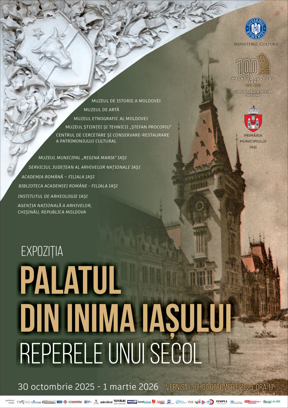 Complexul Muzeal Național „Moldova” Iași anunță deschiderea expoziției „Palatul din inima Iașului. Reperele unui secol”, un proiect cultural dedicat împlinirii a 100 de ani de la inaugurarea Palatului Culturii, simbolul identitar al orașului Iași și reper arhitectural al României moderne.