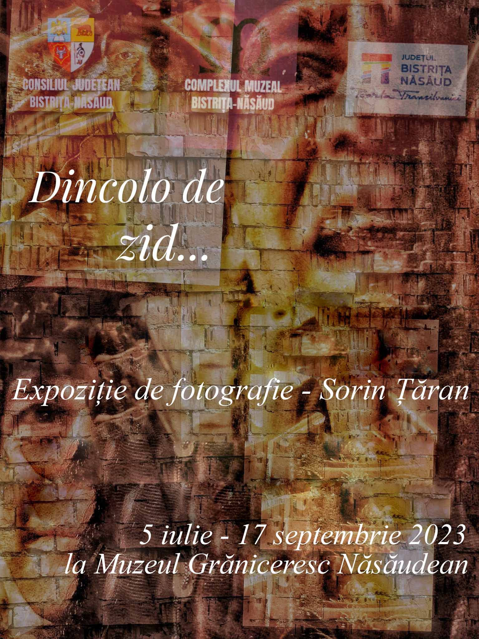 În perioada 5 iulie – 17 septembrie 2023, Muzeul Grăniceresc Năsăudean găzduieşte expoziţia de fotografie „Dincolo de zid …”, având ca autor pe bistriţeanul Sorin Ţăran, absolvent al Liceului „Liviu Rebreanu” Bistriţa (1986) şi al Institutului Politehnic Cluj-Napoca (1993). Pasionat de literatură, muzică, artă, natură, drumeţii, acesta a descoperit treptat şi lumea minunată a fotografiei. Primii paşi în acest fascinant univers surprind momente inedite din natură şi din viaţa persoanelor dragi. Ulterior, influenţat de tehnicile din pictură, îşi creează un stil aparte, undeva la graniţa dintre fotografie şi pictură, prin îmbinarea celor două forme de artă vizuală, realizând o fluiditate aparte a fotografiilor.