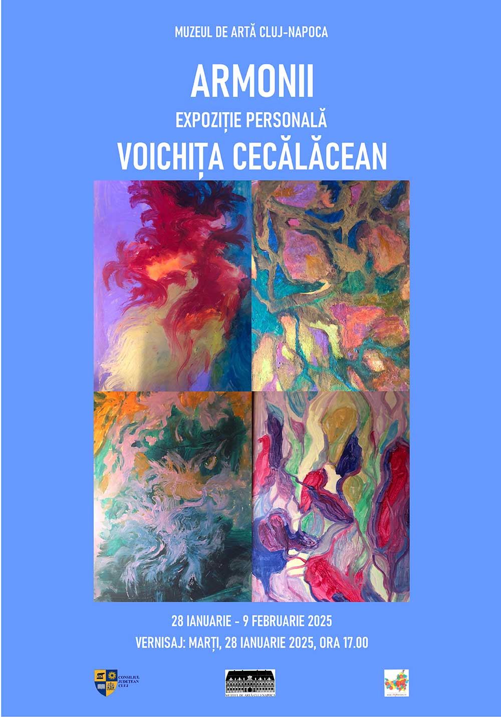 Muzeul de Artă Cluj-Napoca (MACN) vă invită să vizitați, în perioada 28 ianuarie – 9 februarie 2025, expoziția Armonii, care reunește lucrări de pictură realizate de artistul plastic Voichita C. Călăcean.