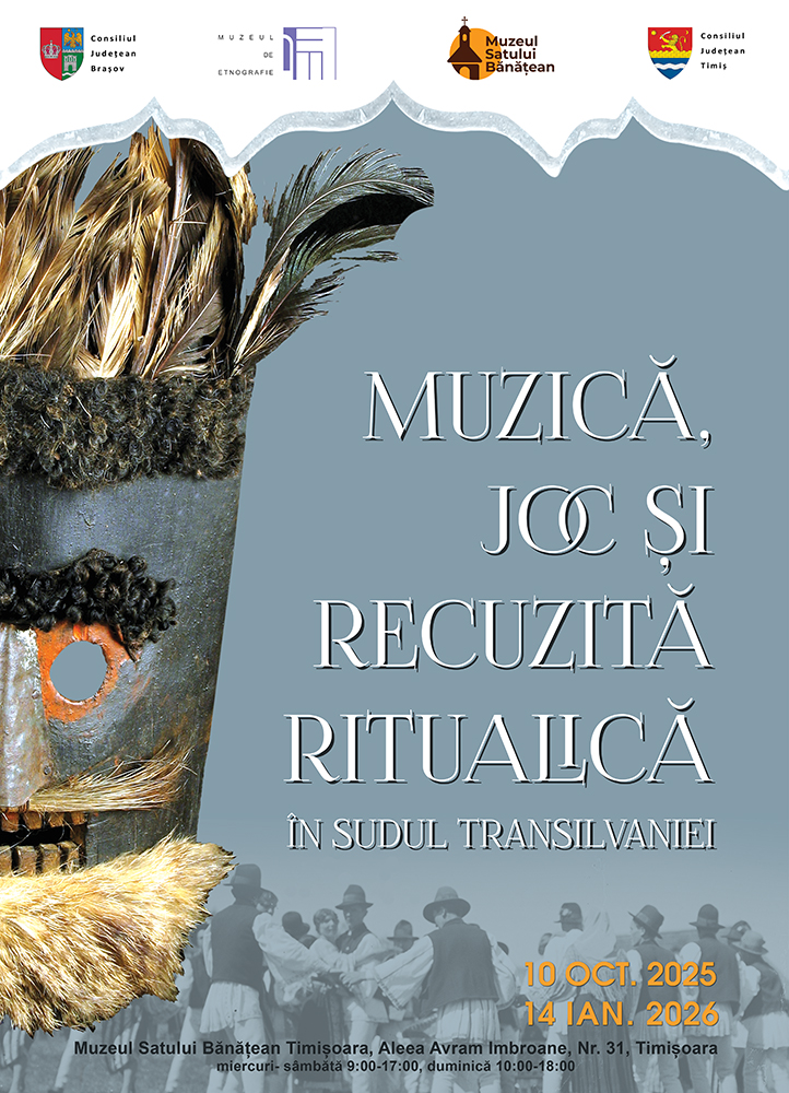Muzeul Satului Bănățean Timișoara are plăcerea să anunțe vernisajul expoziției „Muzică, joc și recuzită ritualică în sudul Transilvaniei”, realizată de Muzeul de Etnografie Brașov și găzduită în spațiile sale, care va avea loc vineri, 10 octombrie, la ora 12:00, expoziția fiind deschisă publicului în perioada 10 octombrie 2025 – 14 ianuarie 2026.