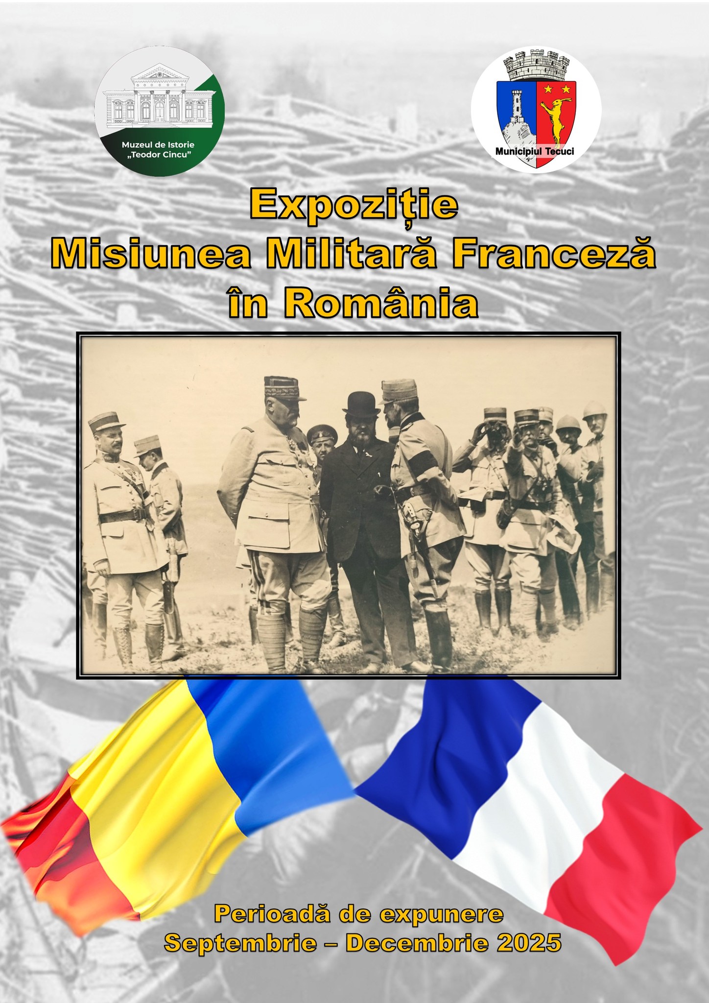 Muzeul de Istorie „Teodor Cincu” Tecuci organizează în perioada septembrie – decembrie 2025 expoziția „Misiunea Militară Franceză”. Publicul este invitat să descopere, în sălile muzeului, o pagină esențială din istoria României legată de Primul Război Mondial: contribuția Misiunii Militare Franceze la rezistența Armatei Române în fața trupelor inamice prin coordonarea operațiunii de către generalul Henri Mathias Berthelot.