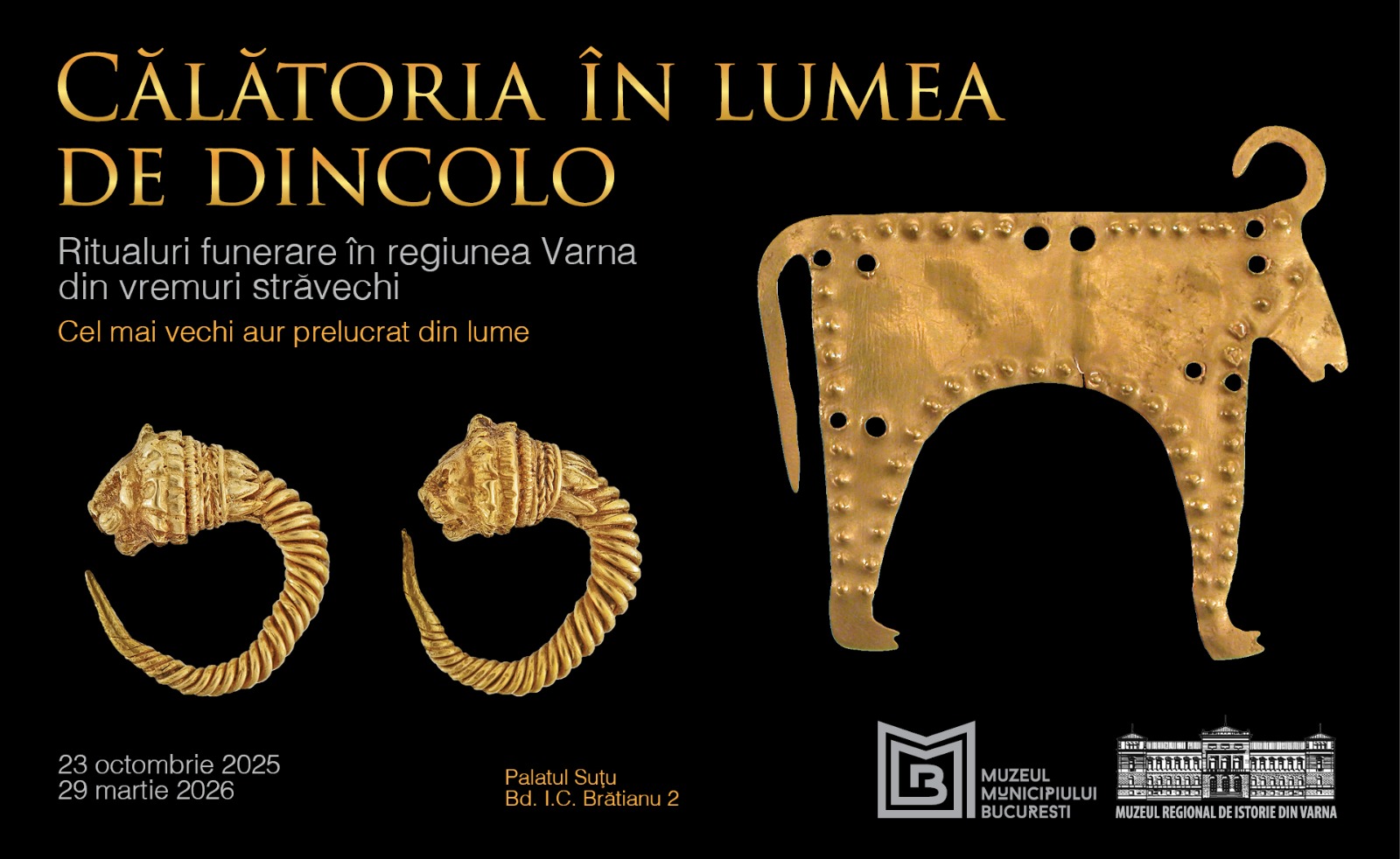 Muzeul Municipiului București, în parteneriat cu Muzeul de Istorie din Varna – Bulgaria, vă invită la vernisajul expoziției „Călătoria în lumea de dincolo. Ritualuri funerare din vremuri străvechi în regiunea Varna”, eveniment care va avea loc joi, 23 octombrie, ora 17.00, la Palatul Suțu (Bd. Ion C. Brătianu, nr. 2).