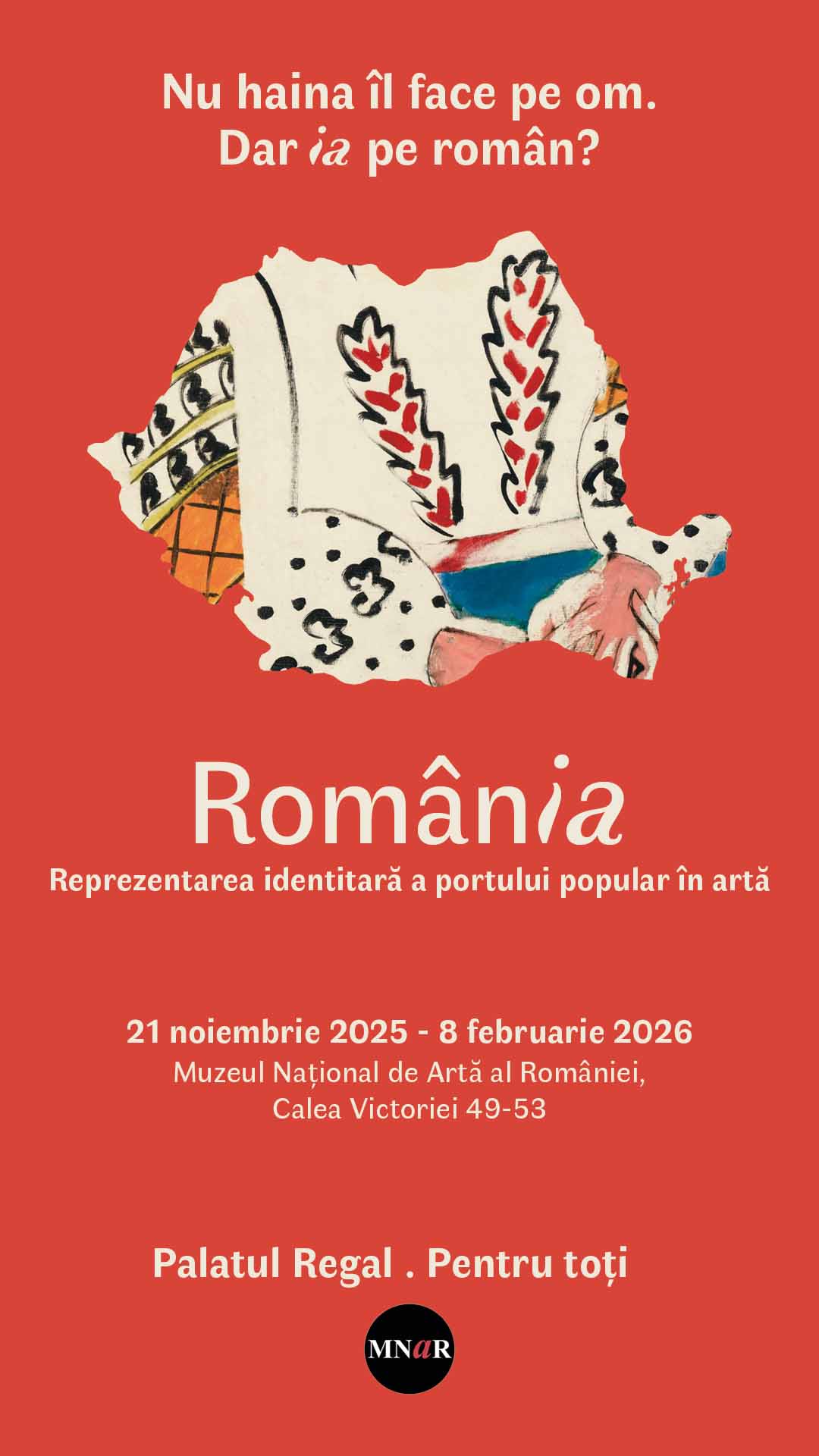Muzeul Național de Artă al României are plăcerea de a vă invita la expoziția-eveniment „RomânIA. Reprezentarea identitară a portului popular în artă”,