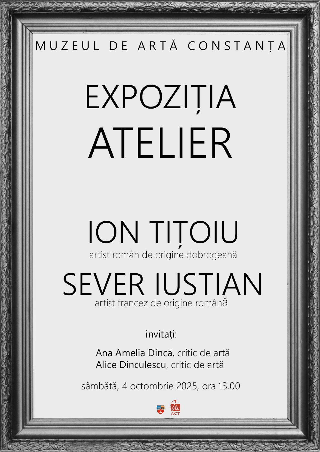 Sâmbătă, 4 octombrie 2025, începând cu ora 13.00, la Muzeul de Artă Constanța va avea loc vernisajul expoziției „Atelier”, un eveniment care marchează reîntâlnirea, pe simeze, a doi artiști contemporani de marcă: Ion Tițoiu și Sever Iustian. La aproape cinci decenii de la prima lor colaborare expozițională din 1978, în același spațiu muzeal, cei doi artiști contemporani, foști colegi la Liceul de Artă din Constanța, își unesc din nou viziunile creatoare.