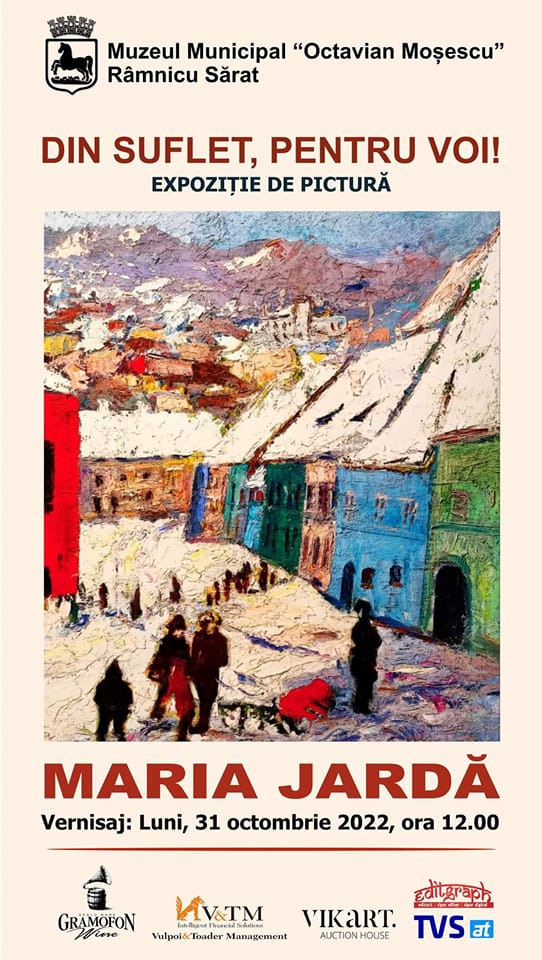 Muzeul Municipal „Octavian Moșescu” va fi gazda timp de o lună, a unei expoziții personale cu un impact sentimental deosebit. „Din suflet, pentru voi” este titlul expoziției artistei plastice Maria Jardă, cea care în ultimii ani a avut o evoluție foarte rapidă pe scena artei contemporane românești și nu numai. Expoziția este un dans al culorilor în care pictorița ne îndeamnă să ne prindem cu toții într-o dăruire a dragostei de care avem atâta nevoie, cu toții!