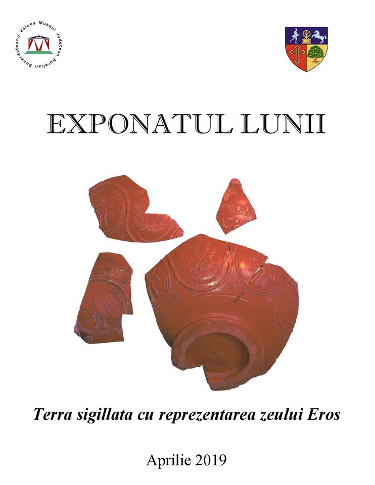 Exponatul lunii Aprilie este un vas fragmentar de tip Terra sigillata cu reprezentarea zeului Eros, descoperit în castrul roman Castra Traiana de la Dăești-Sânbotin, jud. Vâlcea, în timpul cercetărilor arheologice preventive din 2014.
