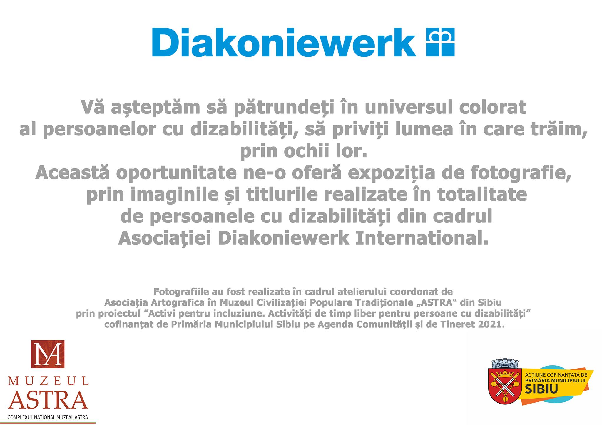 Expoziția cuprinde 30 de fotografii realizate de persoane cu dizabilități. Fotografiile au fost realizate în cadrul atelierului coordonat de Asociația Artografica în Muzeul Civilizației Populare Tradiționale ASTRA din Sibiu, prin proiectul Activi pentru incluziune. Activități de timp liber pentru persoane cu dizabilități, cofinanțat de Primăria Municipiului Sibiu pe Agenda Comunității și de Tineret 2020. Workshop-ul de fotografie, din luna septembrie (13-14.09.2021), a oferit persoanelor cu dizabilităţi posibilitatea de a utiliza o cameră de fotografiat, sub îndrumarea unui profesionist, permițîndu-le astfel să își exprime punctul unic de vedere.