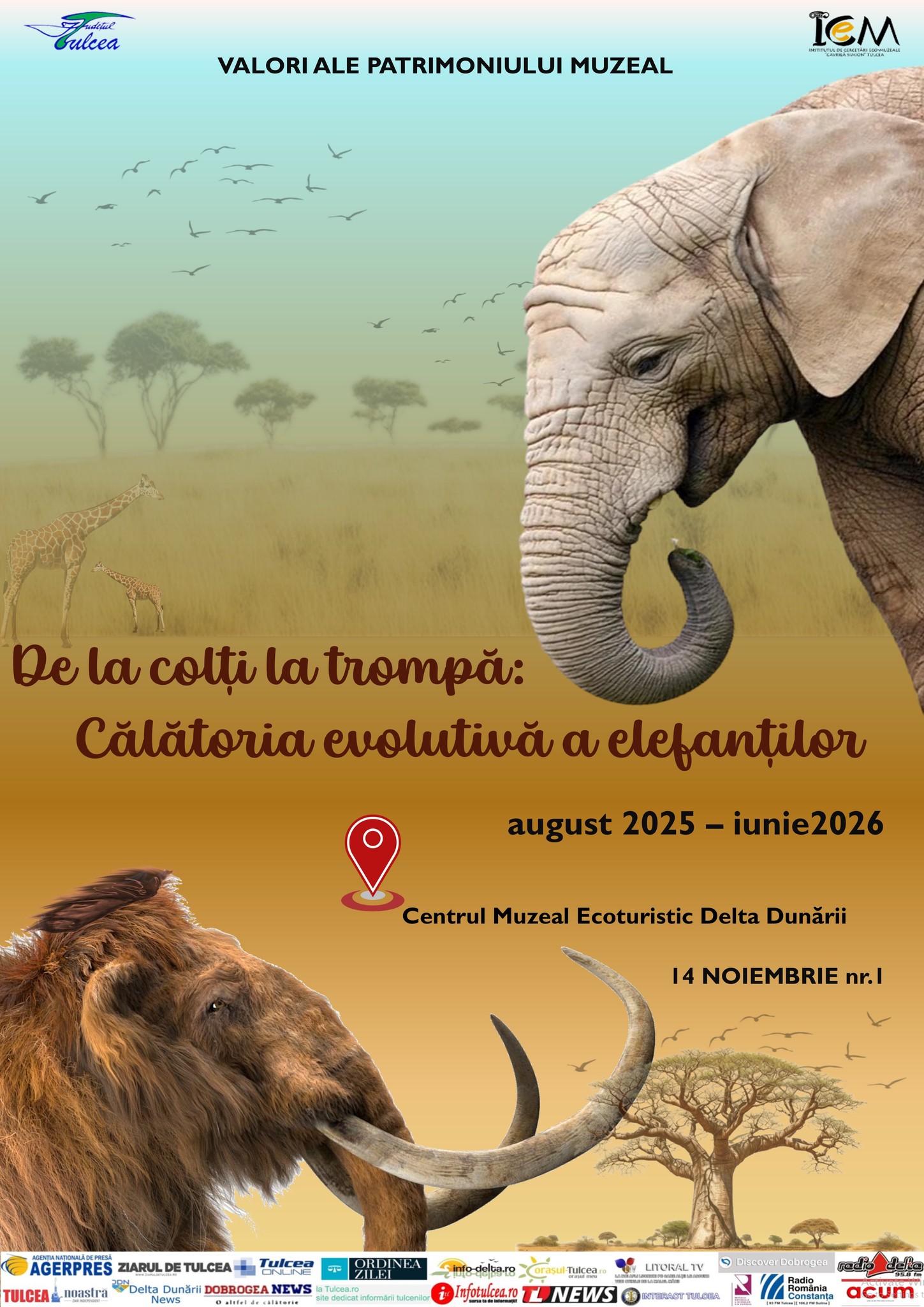 Centrul Muzeal Ecoturistic ”Delta Dunării” - Institutul de Cercetări Eco-Muzeale "Gavrilă Simion" - Tulcea Str. 14 Noiembrie nr. 1, Tulcea, Tulcea, RomaniaInstitutul de Cercetări Eco-Muzeale ”Gavrilă Simion” Tulcea vă invită să vizionați Expoziția „De la colți la trompă: Călătoria evolutivă a elefanților” la Centrul Muzeal Eco-Turistic ”Delta Dunării” În perioada august 2025 - iunie 2026, la Centrul Muzeal Eco-Turistic din str. 14 Noiembrie, nr. 1, publicul este invitat să vizioneze expoziția […]